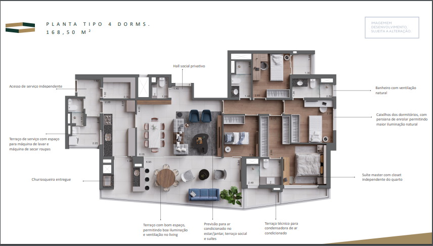 Área Privativa 168 m²